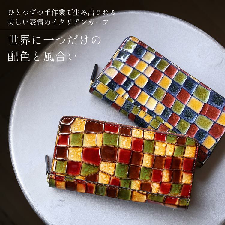 配色の美しさで知られるイタリアンレザーを使用したラウンドファスナー長財布。