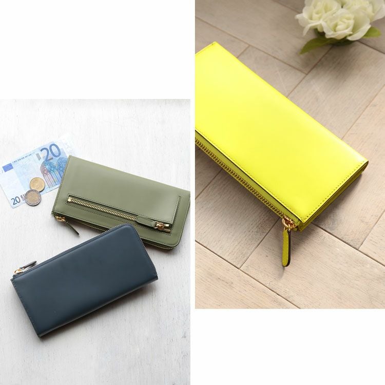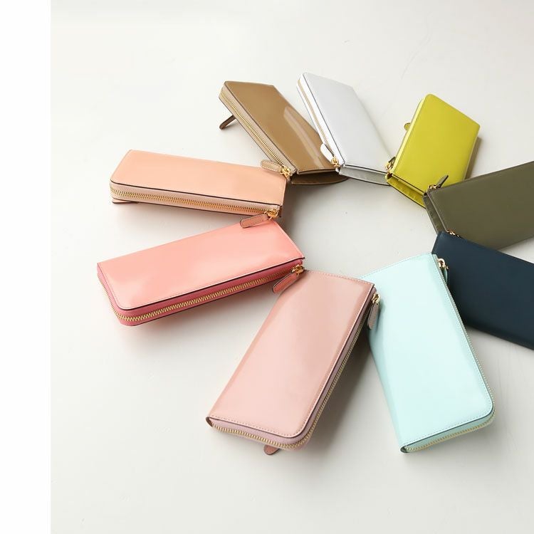 HALEINE フランスレザー エナメル L字ファスナー長財布 4FA