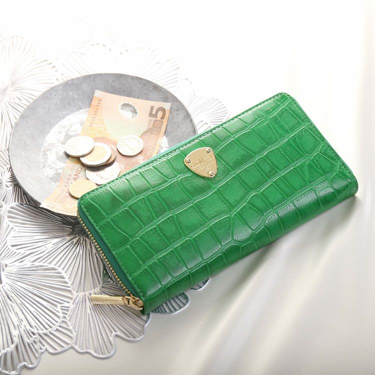 長財布 レディース ラウンドファスナー 財布 レザー クロコ 型押し カード収納 18枚 牛革 本革 多機能 大容量 小銭入れ GOLD PFEIL ブランド ロングウォレット プレゼント ギフト