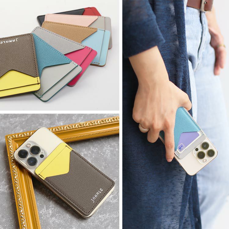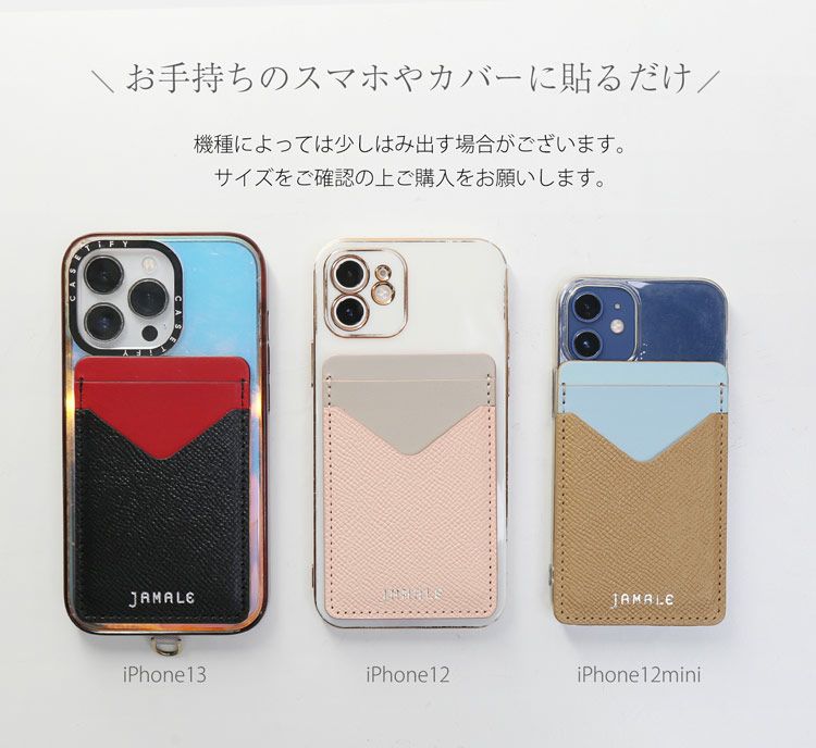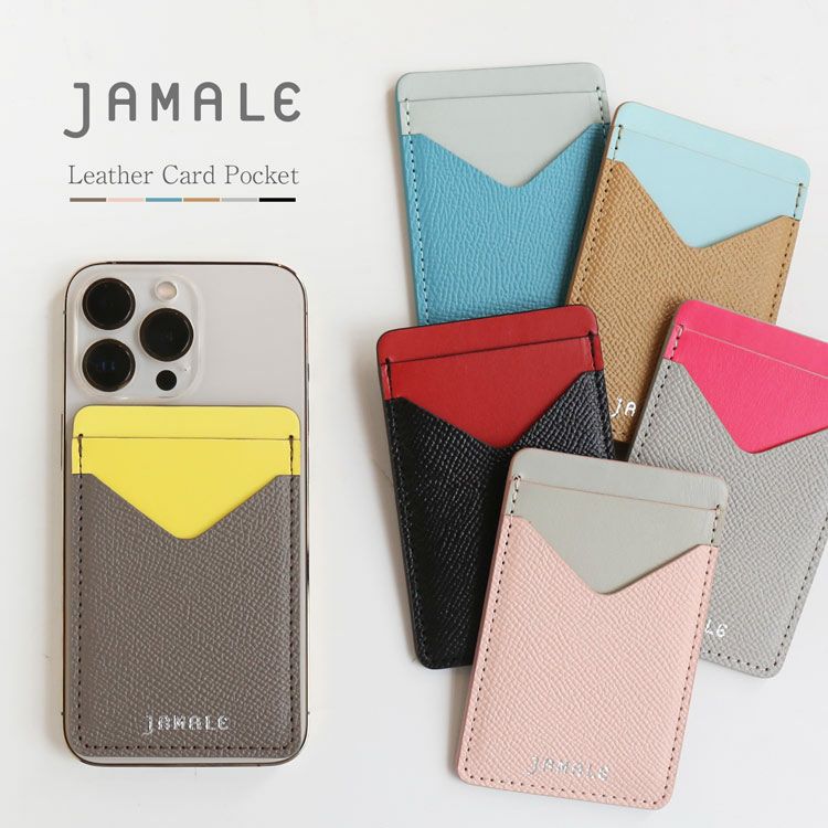 Jamale 本革 スマホ 背面ポケット カードホルダー 貼り付けタイプ【ネコポスで送料無料】 4FA