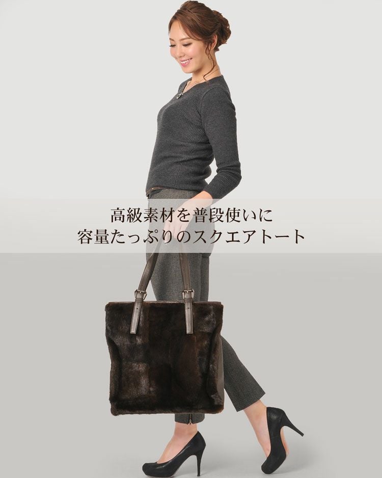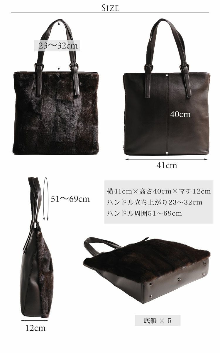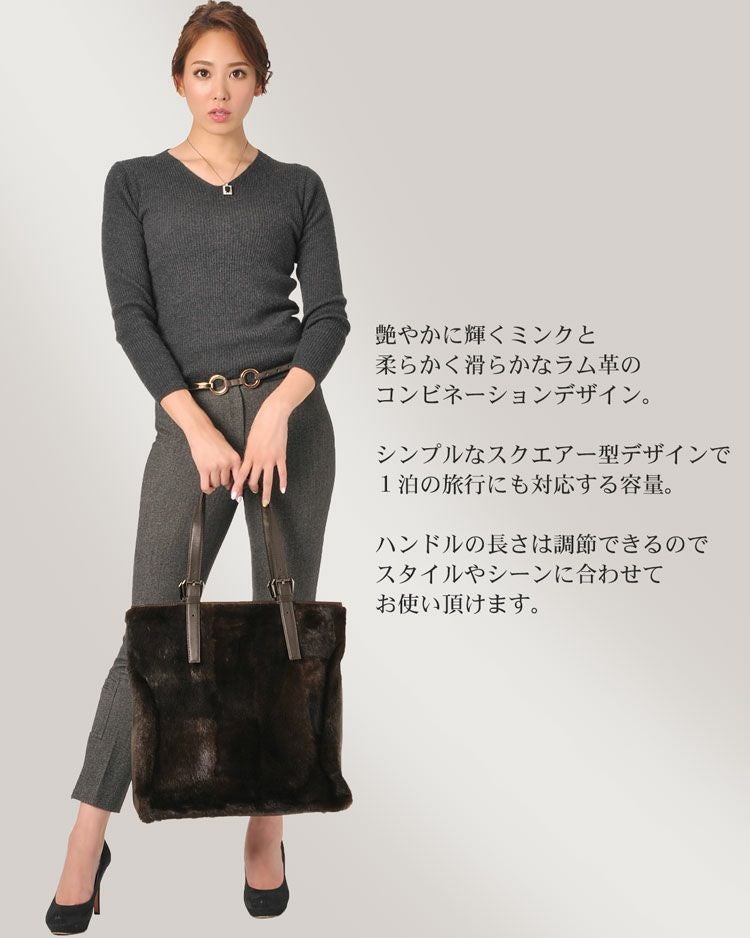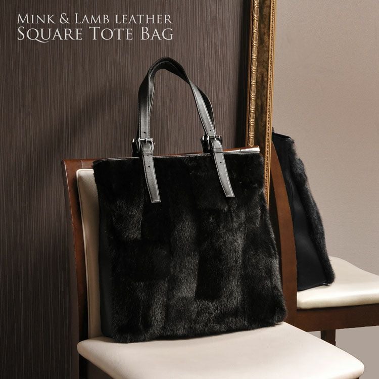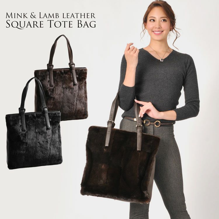 | 商品名:ミンク & ラムレザー コンビネーション トートバッグ / レディース |