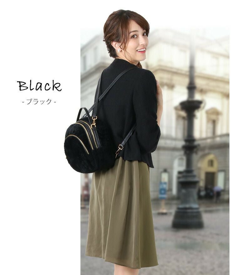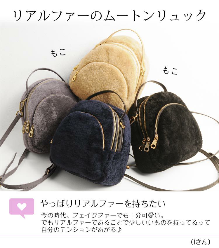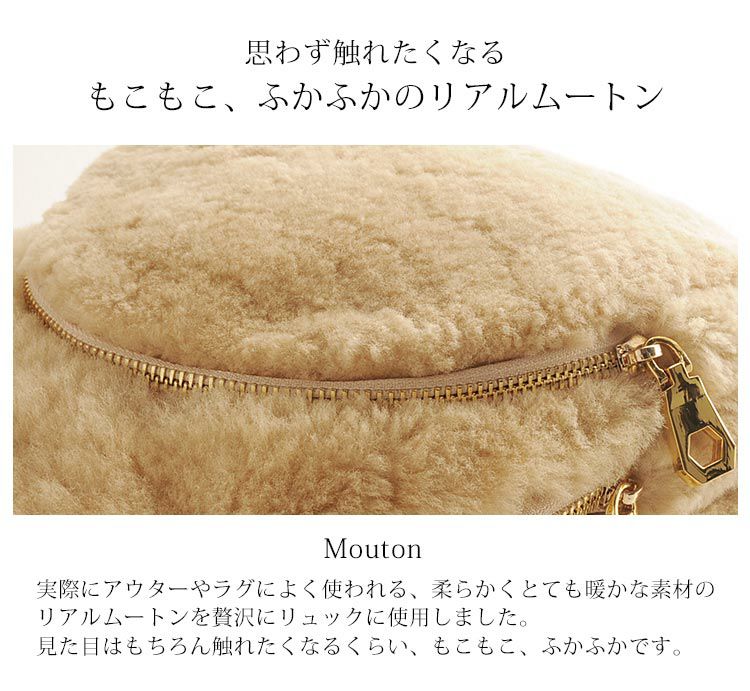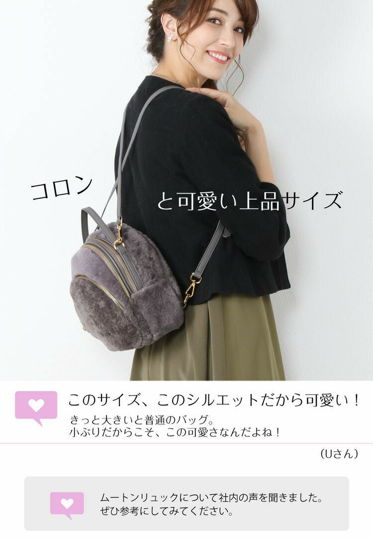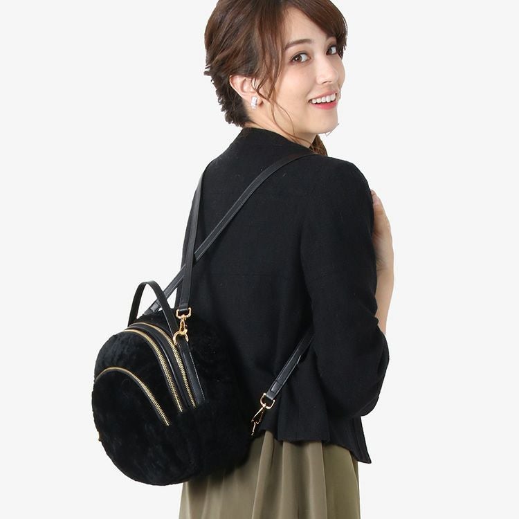 リアルファーのムートンを使用した、コロンとしたシルエットが可愛い上品サイズのリュック。