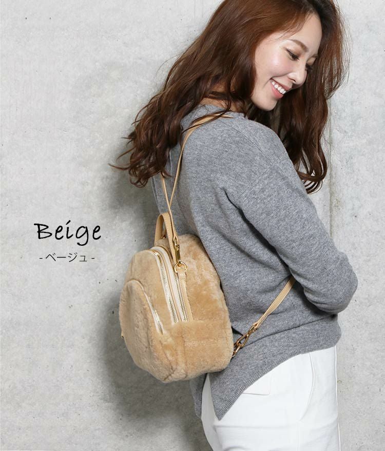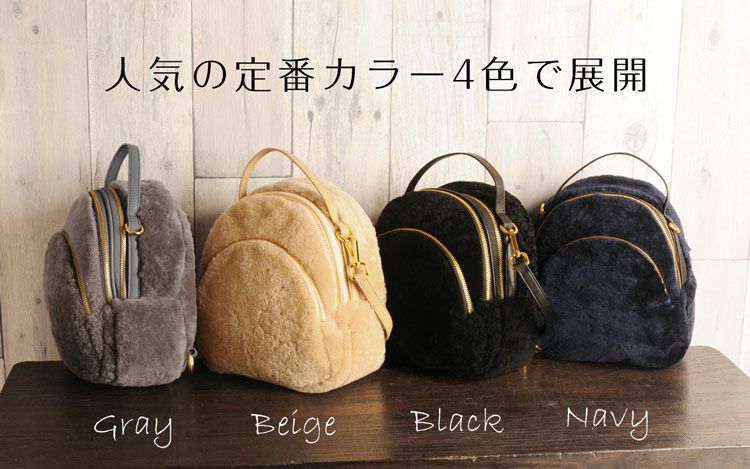 | 商品名:ムートン リュック レディース 秋冬 ベージュ/ネイビー/グレー/ブラック |