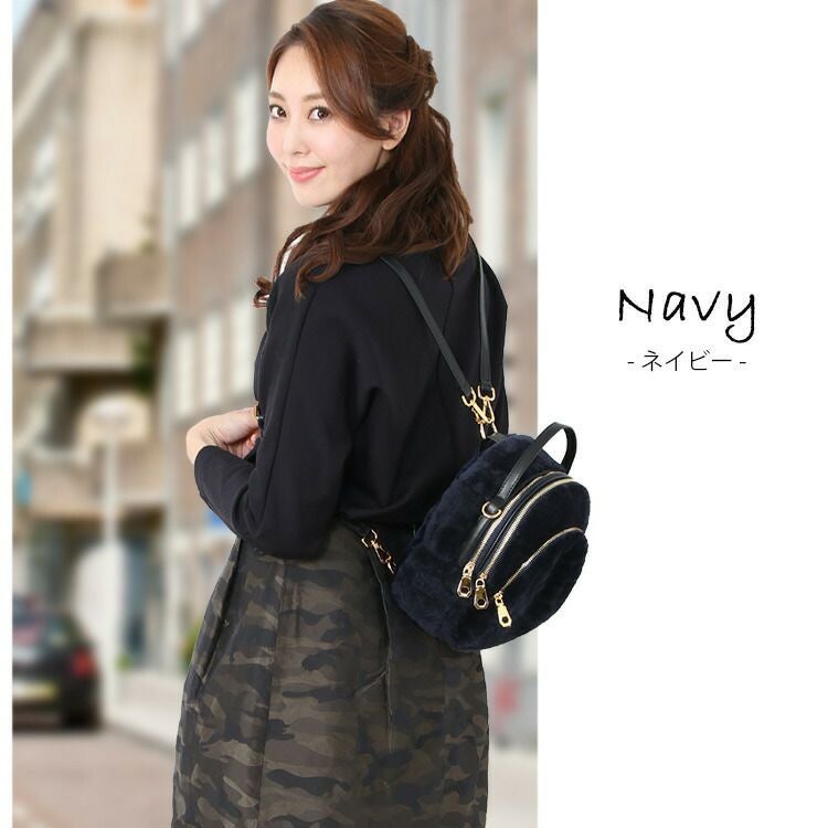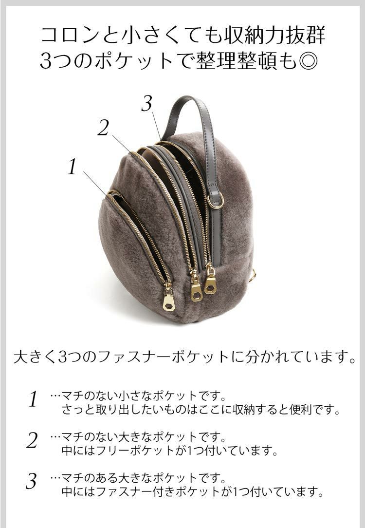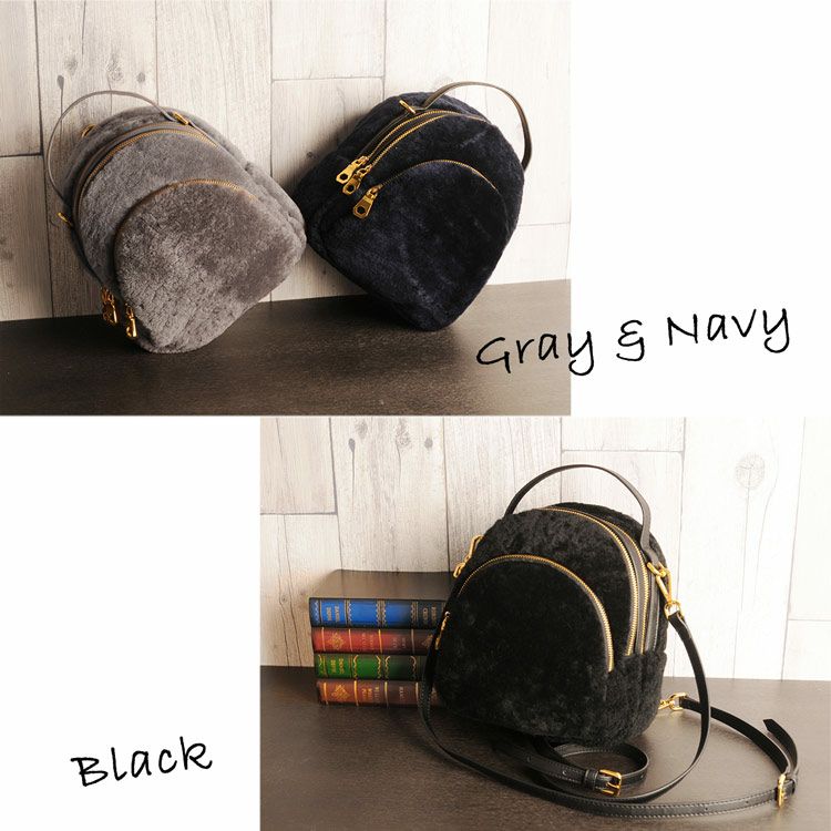 ムートン リュック レディース ベージュ/ネイビー/グレー/ブラック 7F