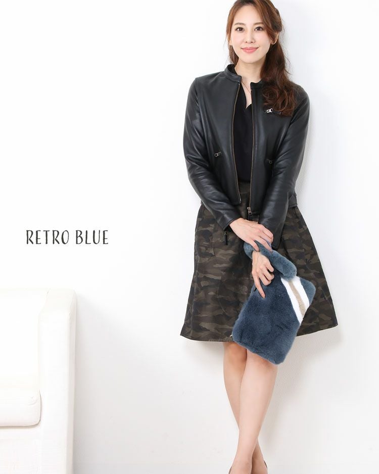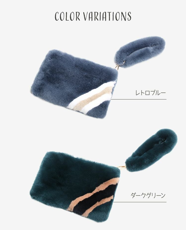 レッキス ファー クラッチ ファーバッグ レトロブルー/ダークグリーン レディース 秋冬 リアルファー ファー バッグ セカンドバッグ ファーポーチ プレゼント ギフト