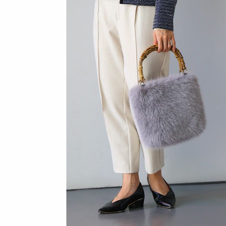 ふんわりエコファー×バンブーハンドルのファーバッグ。