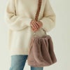 フリルのショルダーが愛らしい巾着ファーバッグ。