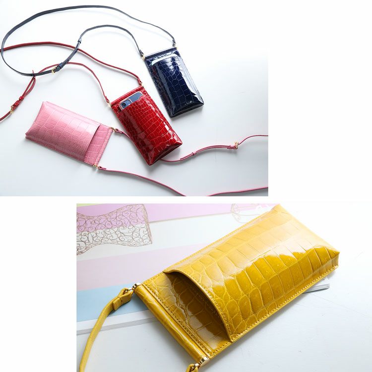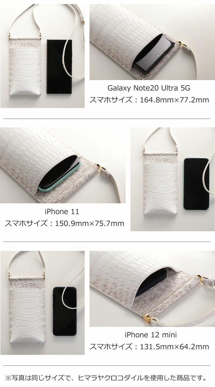 天然皮革 エキゾチックレザー クロコダイル スマホ ポーチ ポシェット シャイニング 加工 カードホルダー付き iphone android ミニ ショルダーバッグ スマホ入れ スマホケース 本革 鰐革 ギフト プレゼント ladiesbag