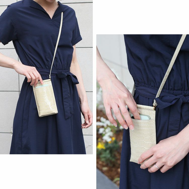 なるべく身軽にお出かけするためにも、荷物は最小限にしたいという方におすすめの、スマホ+αが入るナイルクロコダイルの小さなポシェットです。