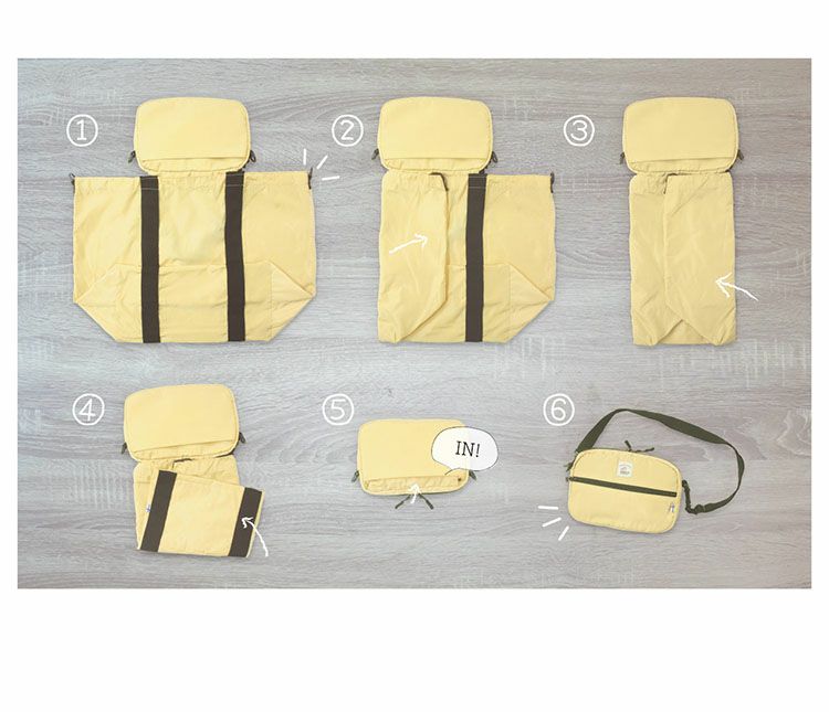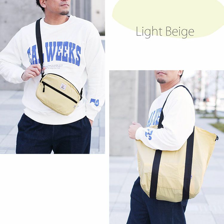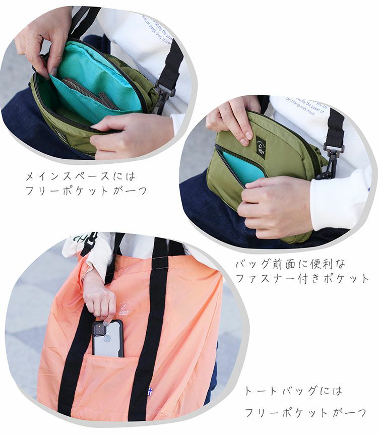 コンパクトな見た目のショルダーポーチが、パッカブル仕様のトートバッグに。