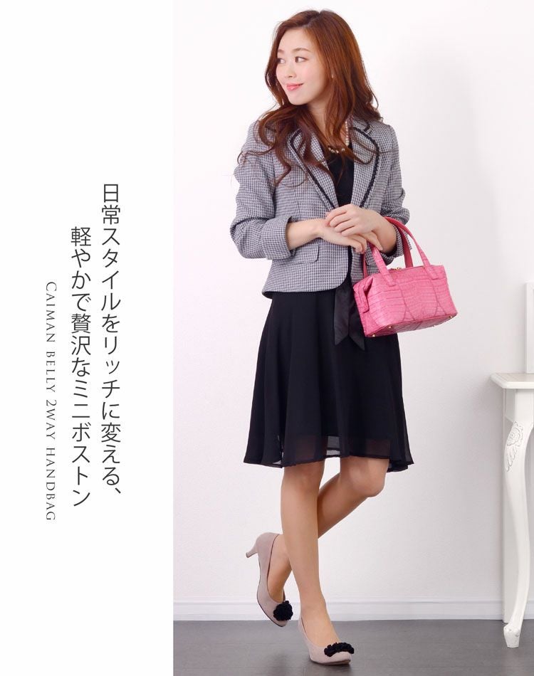 | 商品名:ミニボストンバッグ 2WAY カイマンベリー チャーム付き / レディース |