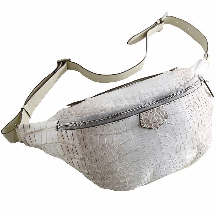 白を基調とした美しいグラデーションのヒマラヤクロコダイルを使用したボディバッグ。