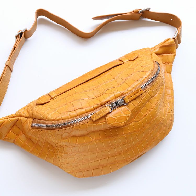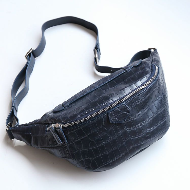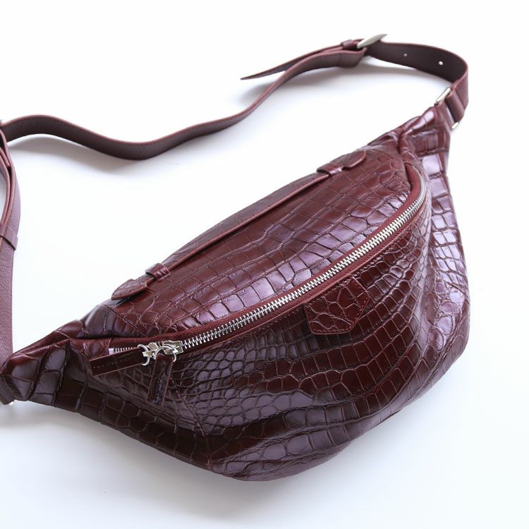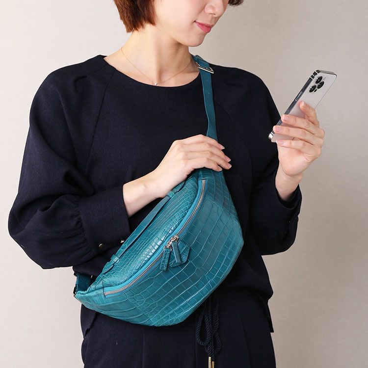 ナイルクロコダイルの高級感のある表情が魅力のボディバッグ。