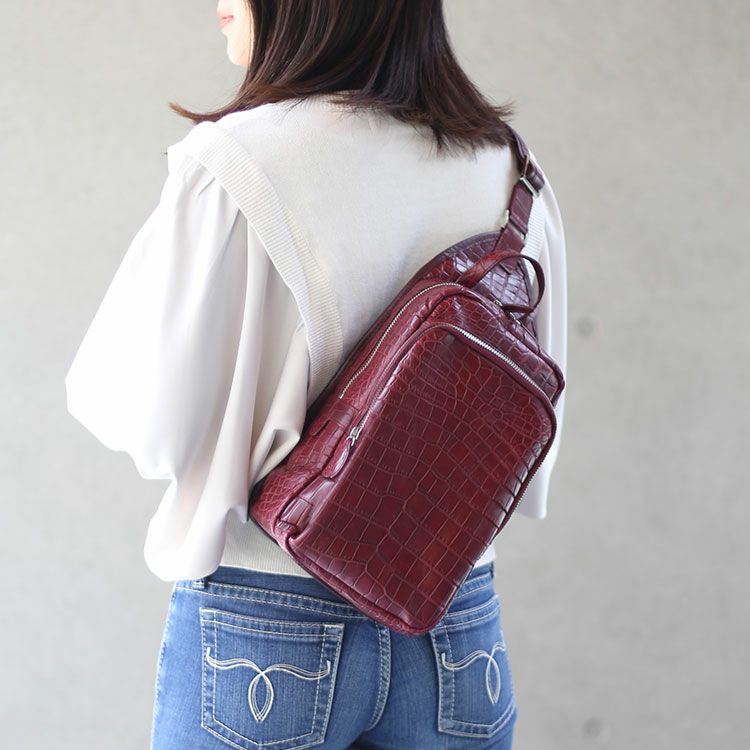 ナイルクロコダイルの高級感のある表情が魅力のボディバッグ。