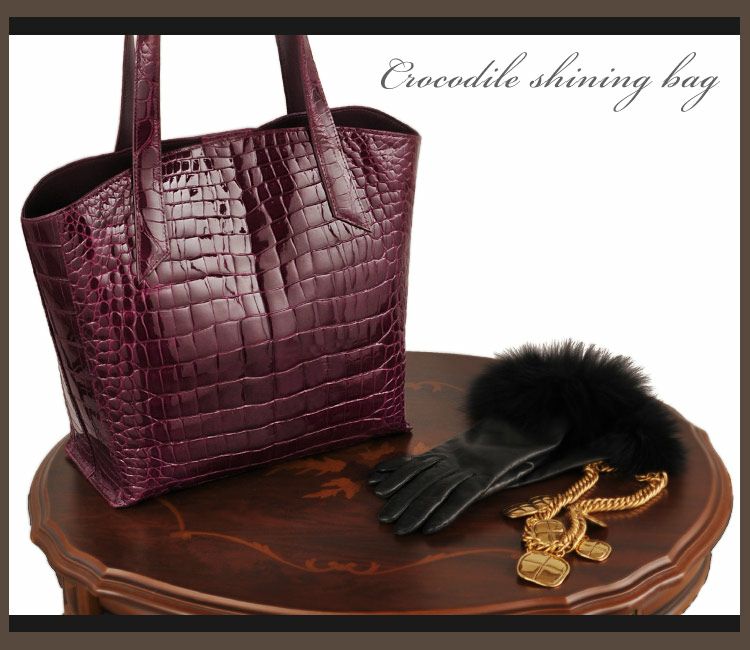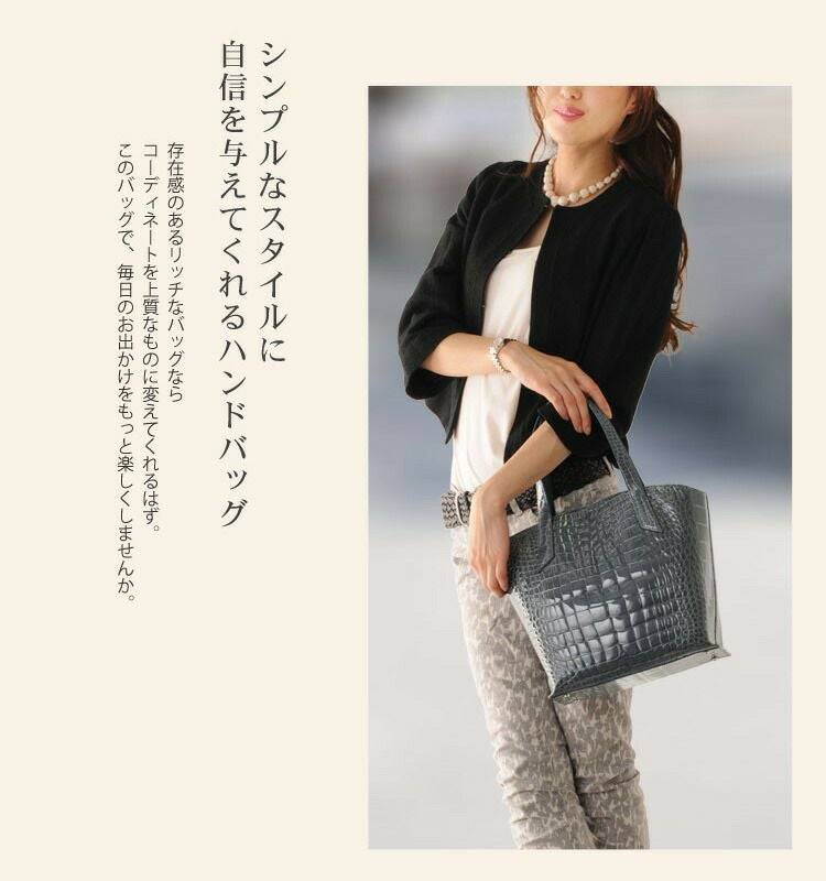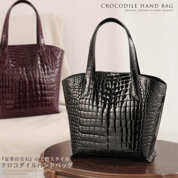 クロコダイル ハンドバッグ シャイニング加工 センター取り 日本製 / レディース (No.06000286) |