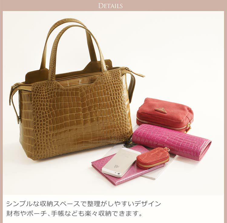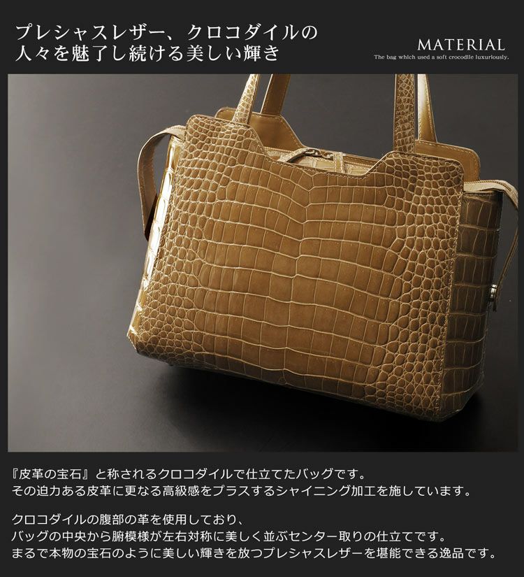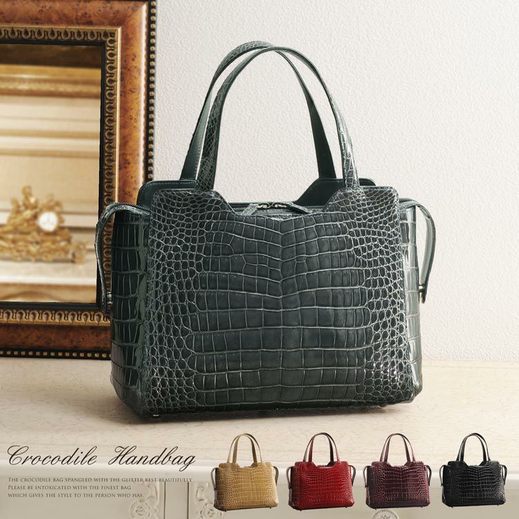 天然皮革 エキゾチックレザー 日本製 シャイニング クロコダイル 2way ハンドバッグ レディース センター取り 旅行 お出かけ パーティー 本革 肩掛け ショルダー ワニ革 安心 保証書 付き 女性 プレゼント ギフト ladiesbag