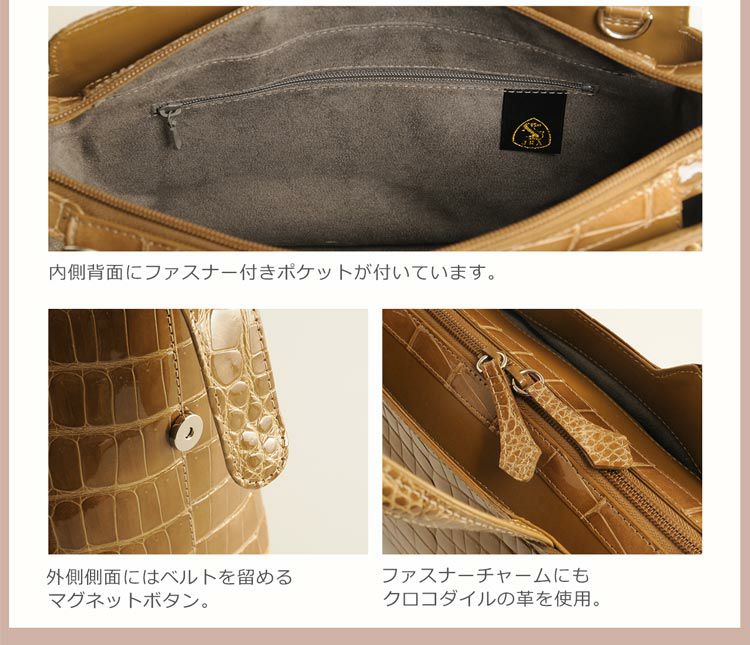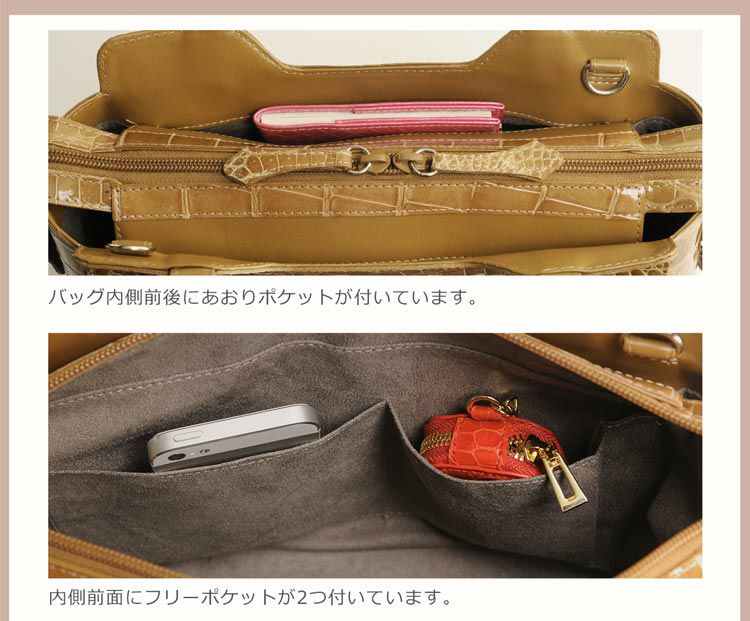商品名:シャイニング クロコダイル 2WAY ハンドバッグ 日本製 センター取り