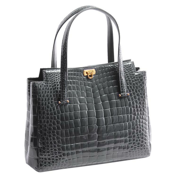 天然皮革 エキゾチックレザー クロコダイル ハンドバッグ 日本製 シャイニング 加工 センター取り ゴールド金具 軽量 JRA 全9色 ワニ革 安心 保証書 付き母 女性 プレゼントギフト ladiesbag