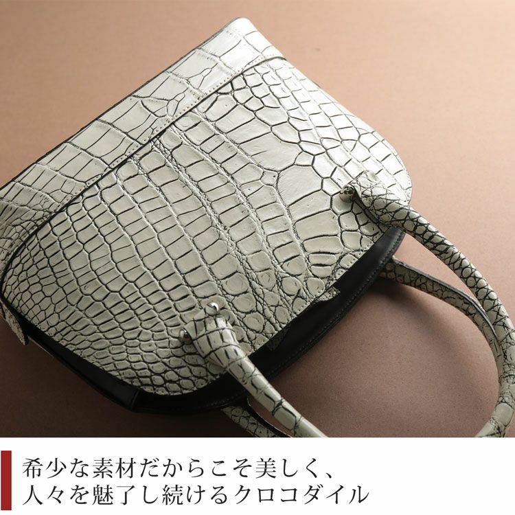 『皮革の宝石』と称されるクロコダイルの革を贅沢に使用したハンドバッグです。