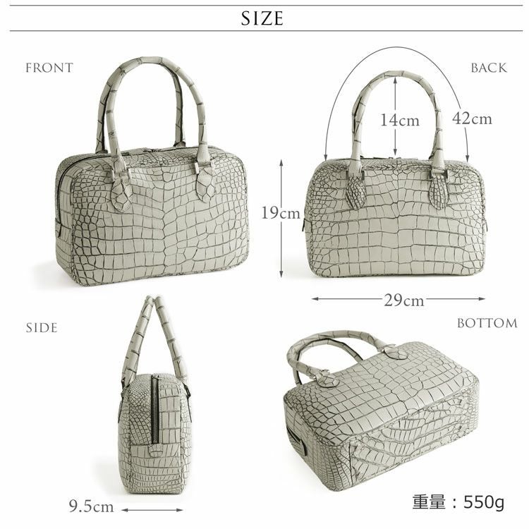 クロコダイル ハンドバッグ レディース 日本製 センター取り JRA『クロコダイル保証書付き』 4FA