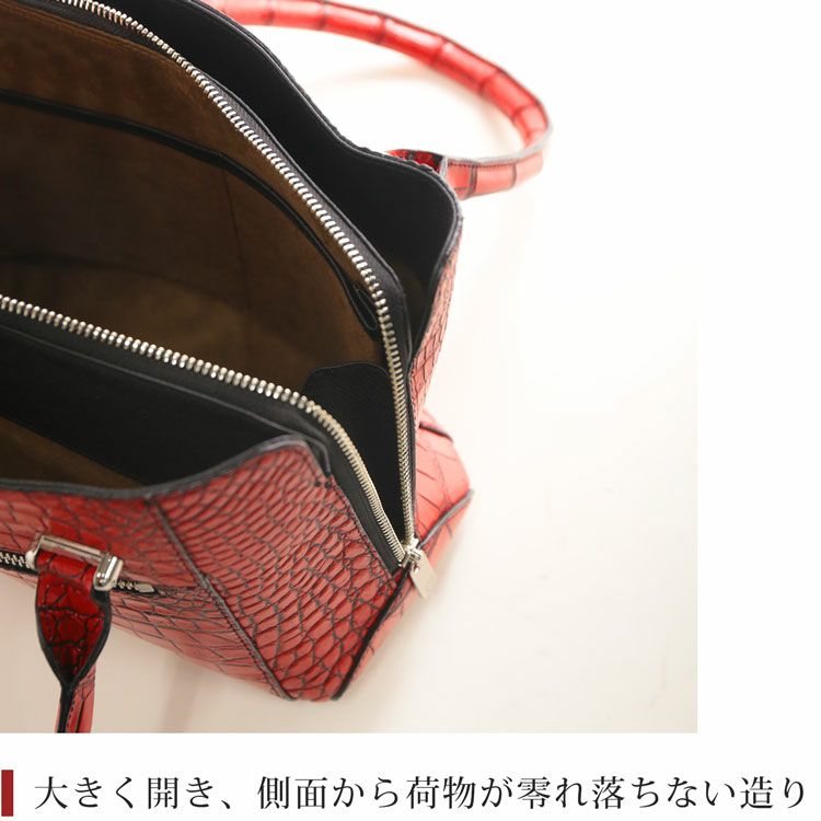 | 商品名:クロコダイル ハンドバッグ レディース 2WAY ショルダーベルト付き 日本製 保証書 付き JRA |