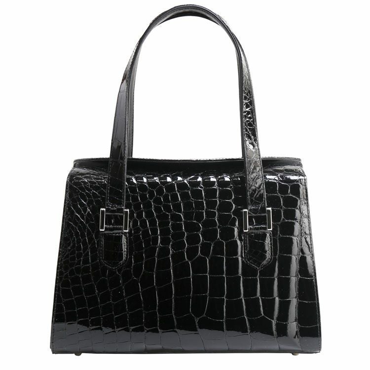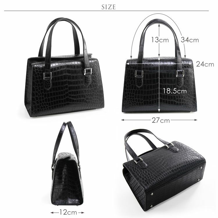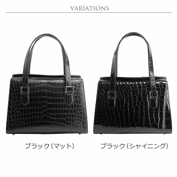| 商品名:クロコダイル ハンドバッグ レディース 日本製 フォーマルバッグ ブラック 黒 シャイニング/マット JRA 4FA クロコダイル 保証書 付き |