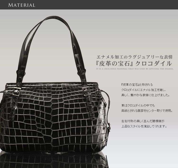 ソフトエナメル クロコダイル ハンドバッグ センター取り プレゼント 『クロコダイル保証書付き』 4FA