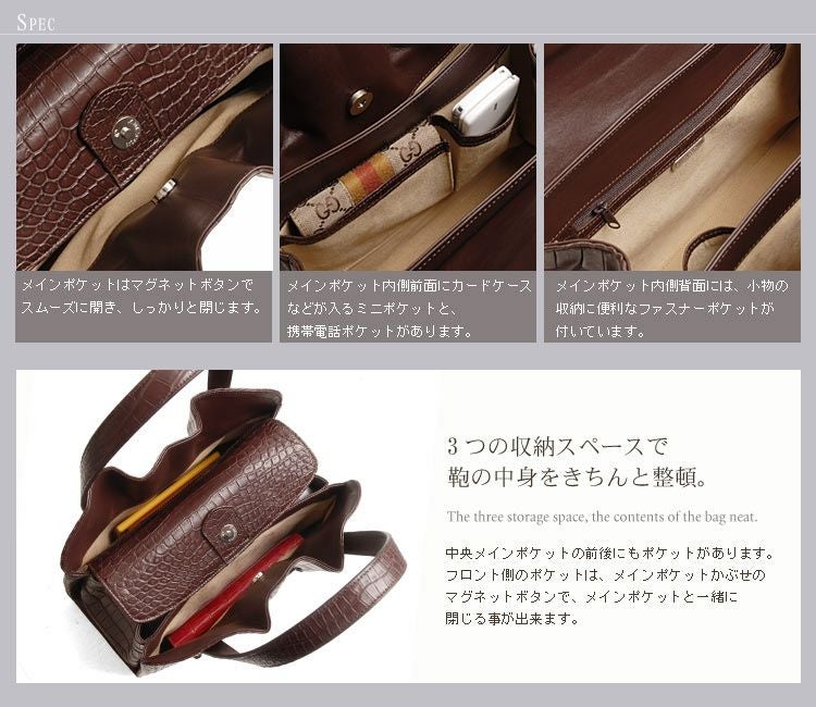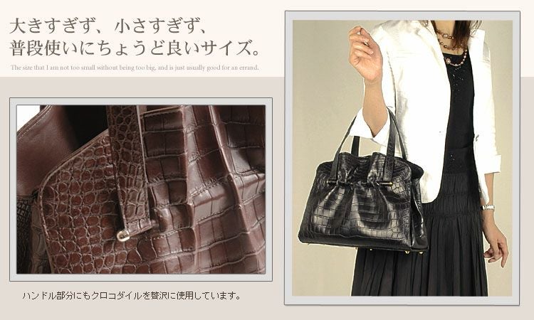 クロコダイル マット ハンドバッグ センター取り 『クロコダイル保証書付き』 4FA