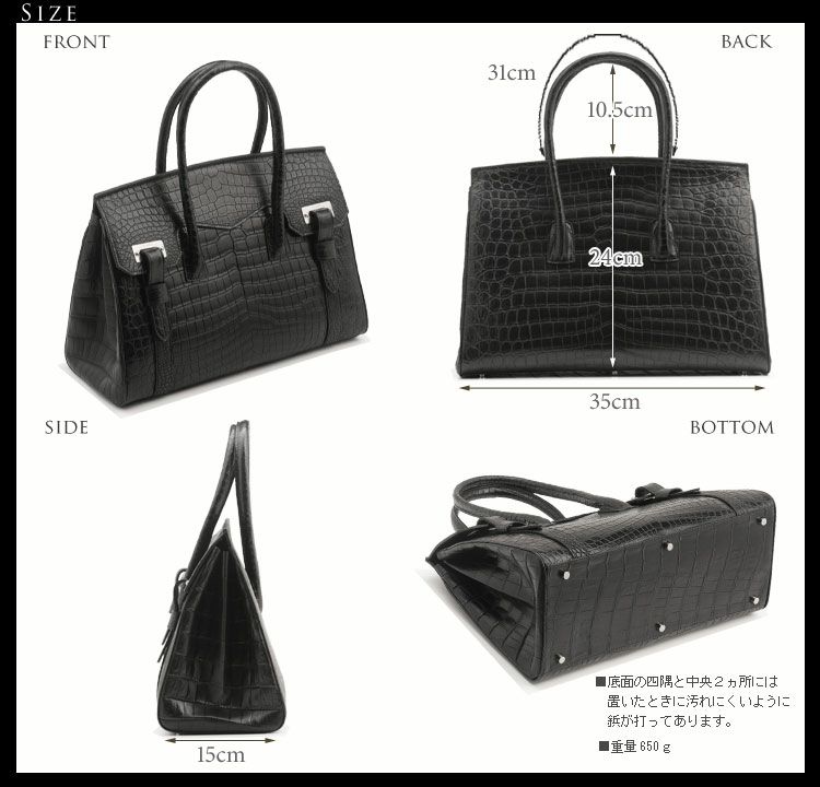 クロコダイルハンドバッグ(マット仕上げ)、クロコダイルバッグ |