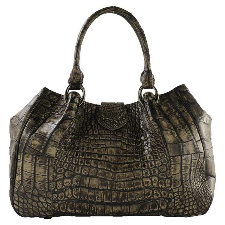丸みのあるフォルムで女性らしい、アリゲーターハンドバッグ。