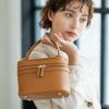 コロンとしたボックス型のデザインが可愛らしいバニティバッグ。
