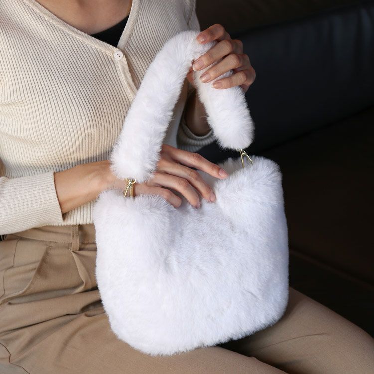 エコファー 2way ハンドバッグ ショルダーバッグ レディース 女性 ファー フェイクファー 秋冬 秋 冬 カジュアル シンプル お洒落 ホワイト 白 モカ 茶 ブラック 黒 プレゼント ギフト 7F(07000563r)