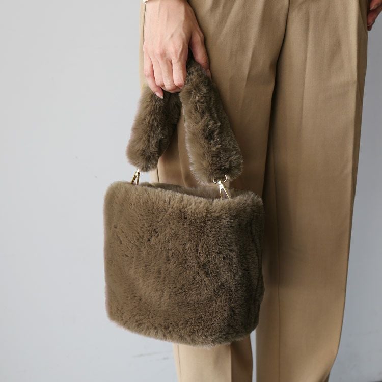 フェイクファー 2way ハンドバッグ ショルダーバッグ レディース 女性 ファー  エコファー グレー マテリアル 気持ちいい ふわふわ