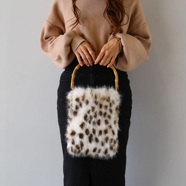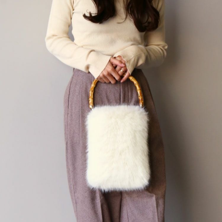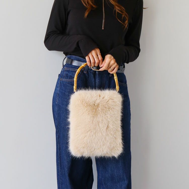 ふんわりエコファー×バンブーハンドルのファーバッグ。
