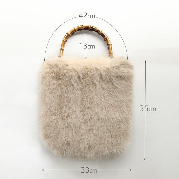 エコファーバッグ バンブー 持ち手 ハンドル バッグ 二本 竹持ち手 ハンドバッグ ゴールド 金具 35×33cm 軽量 軽い フェイクファー ファーバッグ バンブーバッグ 大きめ 軽量 ふわふわ 可愛い 女性 レディース ギフト プレゼント 実用的