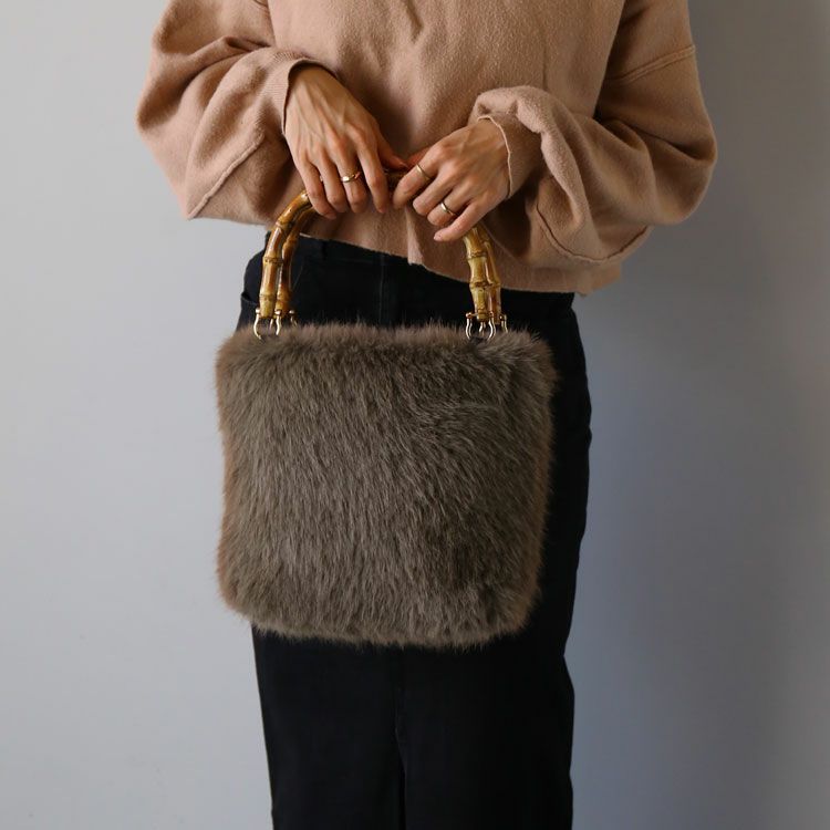 ふんわりエコファー×バンブーハンドルのファーバッグ。