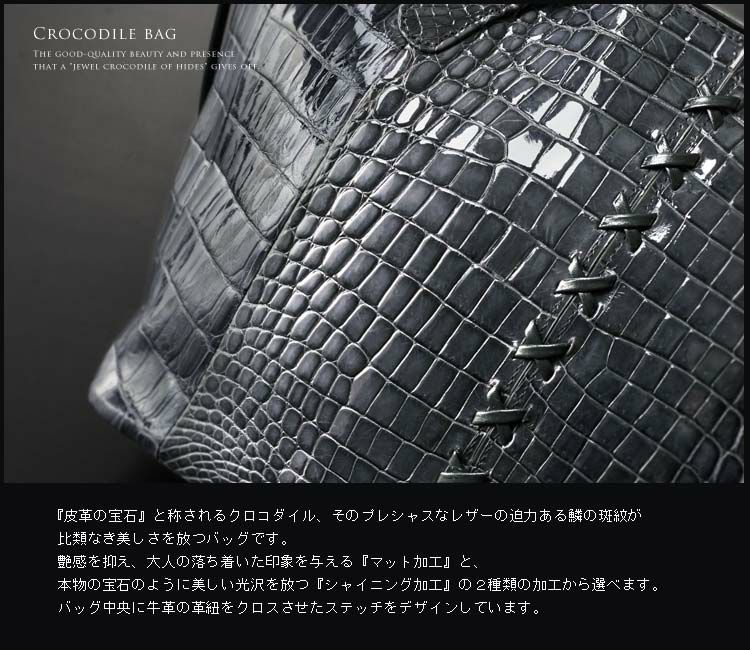 - 本革の良さを生かしたシンプルデザインを基本としたトートバッグを多数取り扱っています。ビジネスシーン、通勤から、休日のカジュアルなスタイルに合わせて持てるから重宝するトートバッグ。目利きのバイヤーが世界中からセレクトしたクロコダイルを使った、あらゆる年代で持っていただけるトートバッグを取り扱っています。クロコダイルは古くから高級皮革として人気があり、今も変わらぬ価値で合い愛されている本革。そんなクロコダイルを使ったトートバッグはスタイルに高級感をプラスしてくれます。