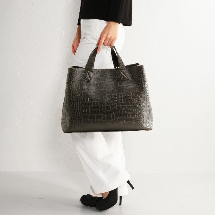 | 商品名:スモール クロコダイル レディース トートバッグ センター取り 大容量 2WAY 仕様 ラウンドファスナーポロサス ネイビー/ダークブラウン/ブラック |