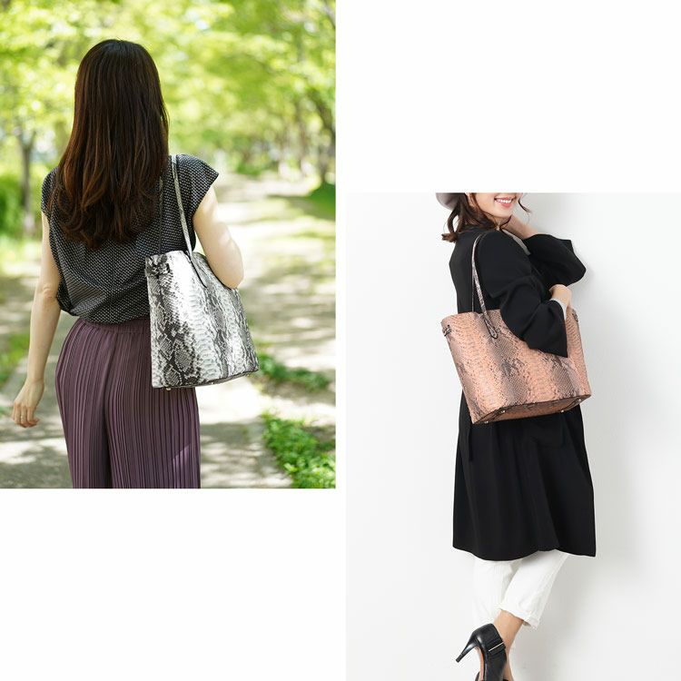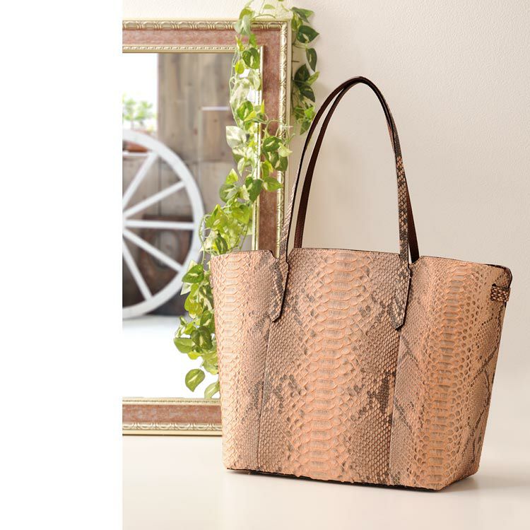 シンプルデザインでも繊細な表情のパイソンを使い、女性らしいバッグに仕立てました。