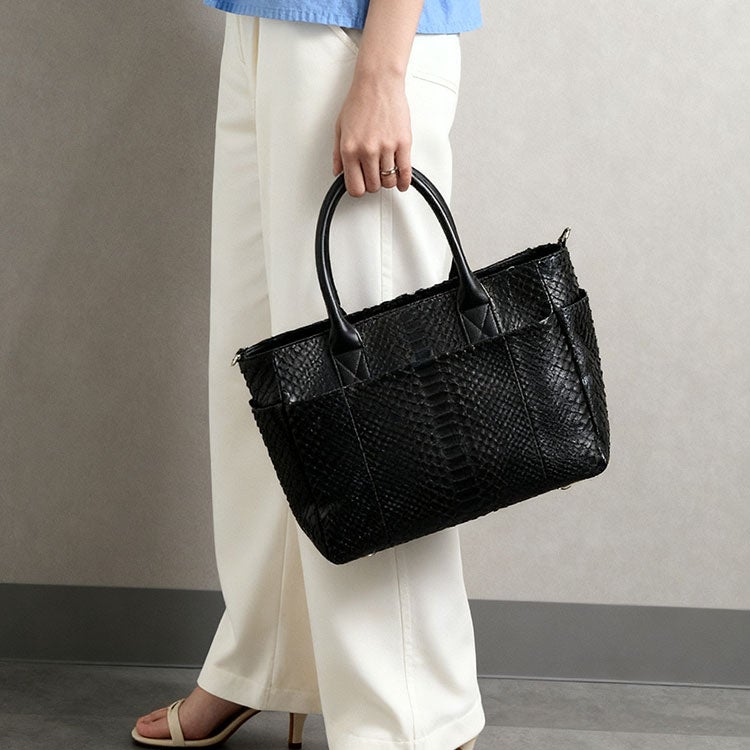 ダイヤモンドパイソンを贅沢に使った2wayミディアムトートバッグ。