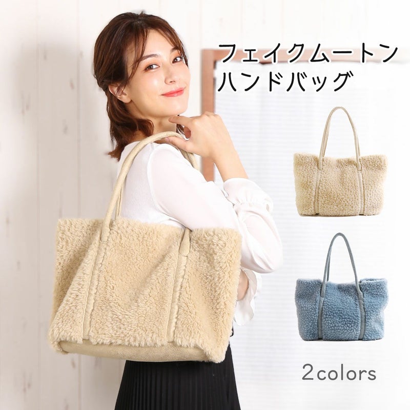 フェイク ムートン ウール トートバッグ エコファー ファーバッグ 軽量 ハンド かばん ムートン風 秋 冬 ふわふわ ギフト ladiesbag