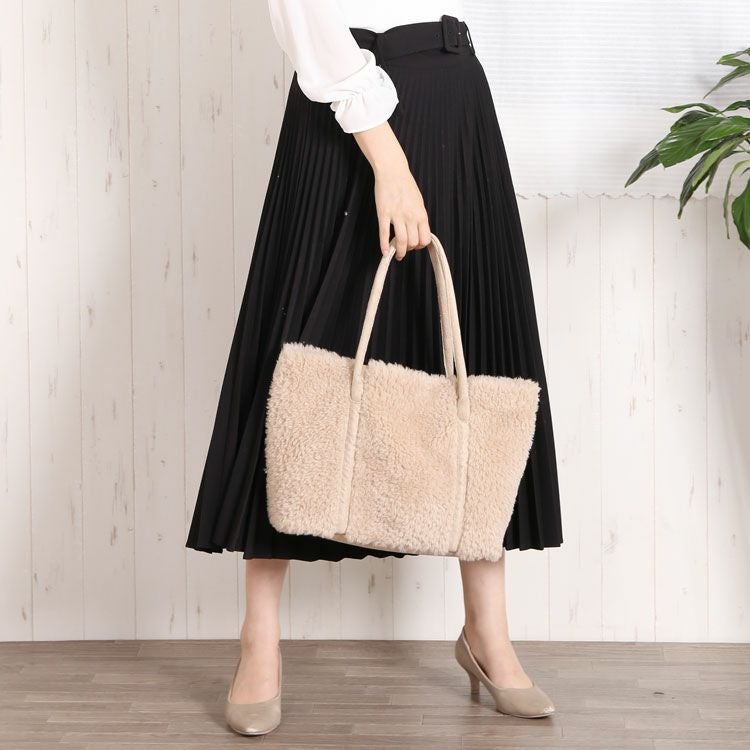ふわもこ可愛いフェイクムートンのトートバッグ。