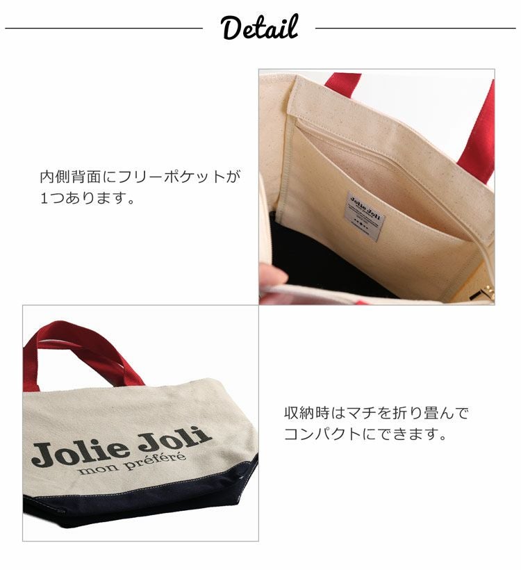 トート バッグ キャンバス レディース ファスナー付き 帆布 ジョリージョリ 5F