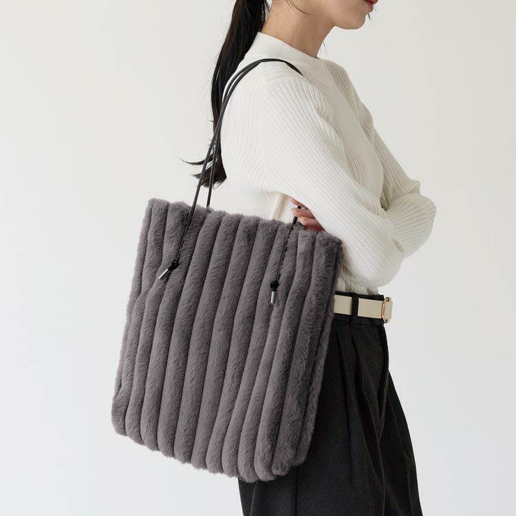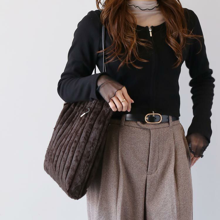 カジュアルコーデにもフェミニンコーデにも合わせやすい、大人かわいいファーバッグ。