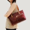 牛革 トートバッグ レディース ローズ柄 型押し Jamale 日本製 花柄 通勤 バッグ 本革 B5 サイズ あおりポケット 付き ハンドバッグ 本皮 皮 革 バラ柄 母 女性 肩掛け 母の日 ギフト プレゼント 4FB (07000051r)