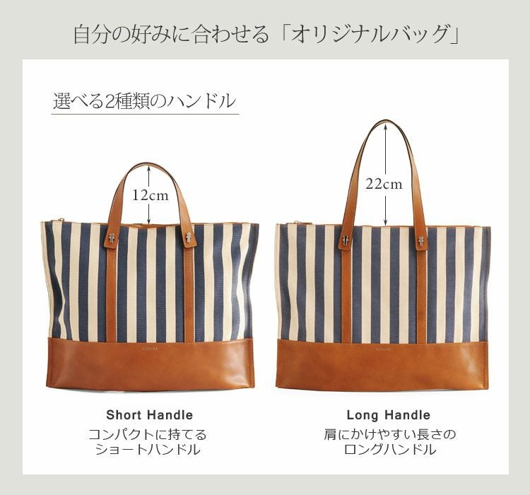 目の細かい織りで、上質なコットンキャンバス(帆布)は明るいストライプデザイン。