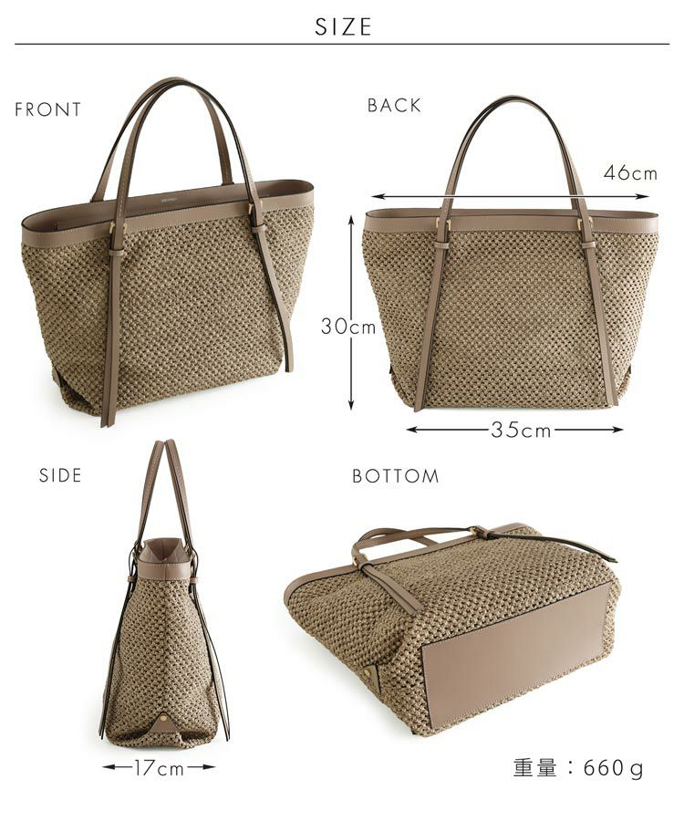 横幅35cm 高さ30cm 底マチ17cm ハンドル立ち上がり18-29cm ハンドル周囲46-68cm 開口部幅46cm
