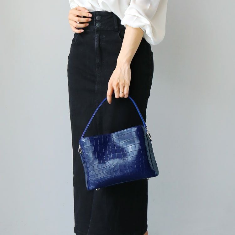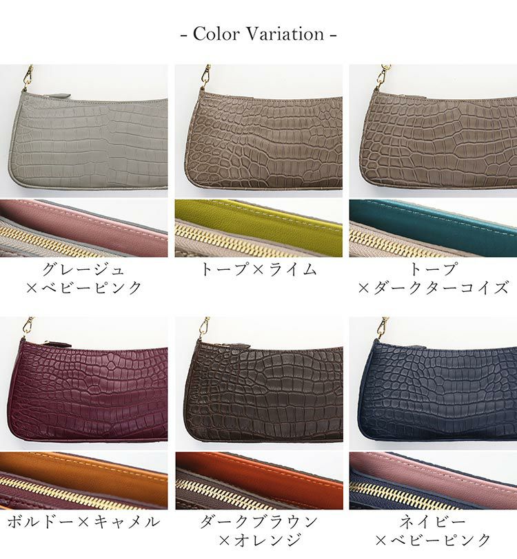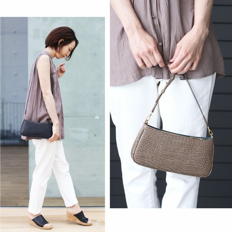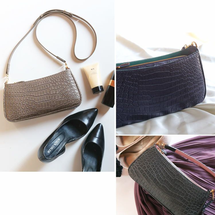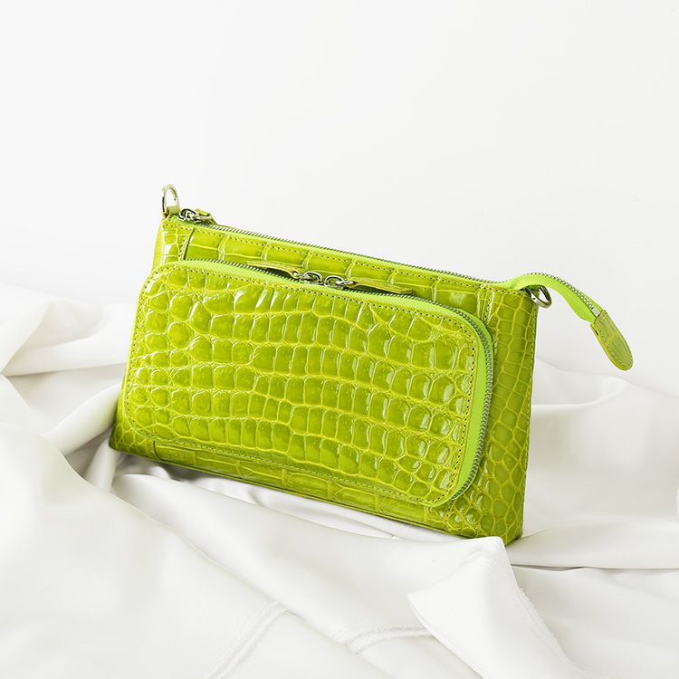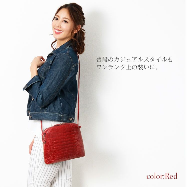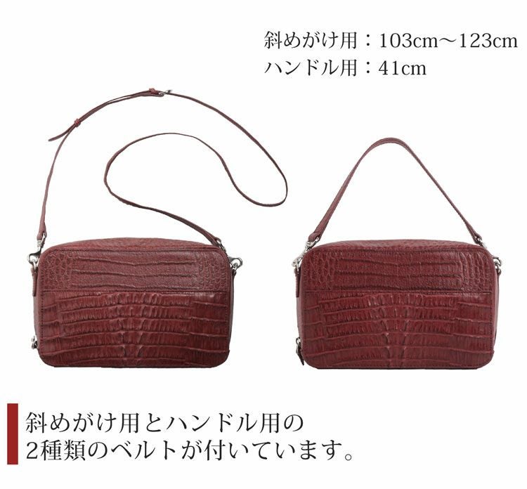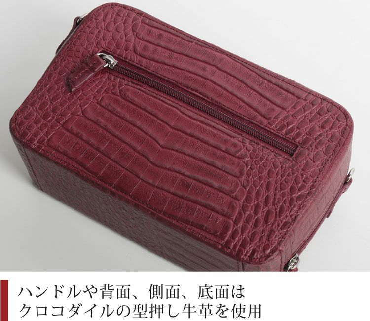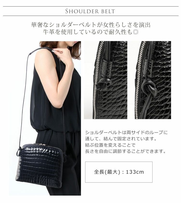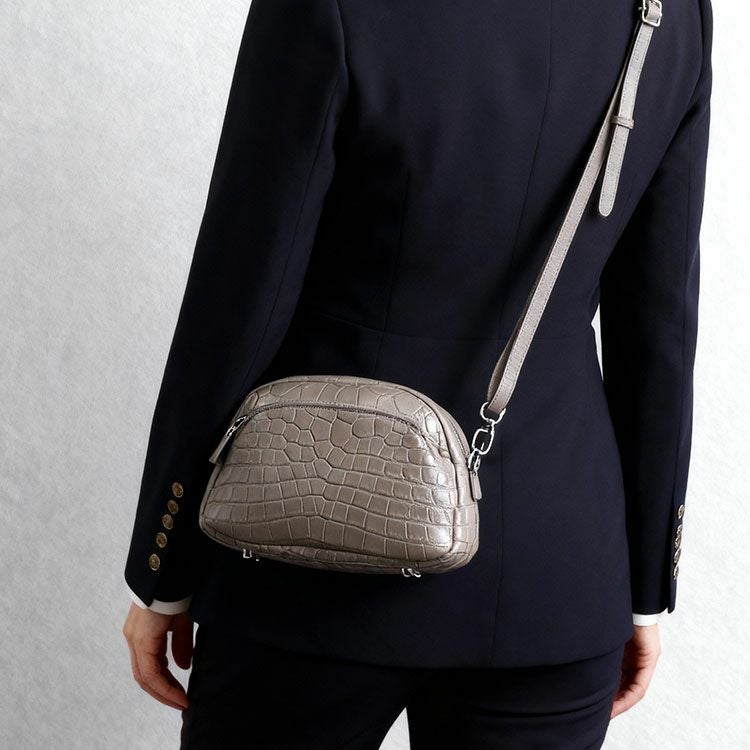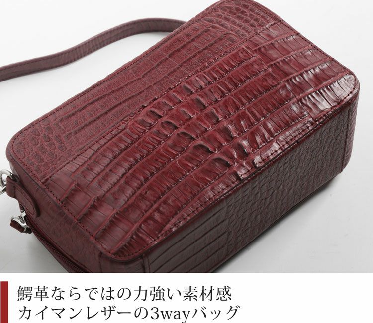 美しい輝きを放つシャイニング加工のクロコダイルを使用。ショルダーバッグ、ハンドバッグ、クラッチバッグの3wayで使用可能です。レディース フォーマル お財布バッグ クロコダイル ショルダーバッグ 3way シャイニング加工