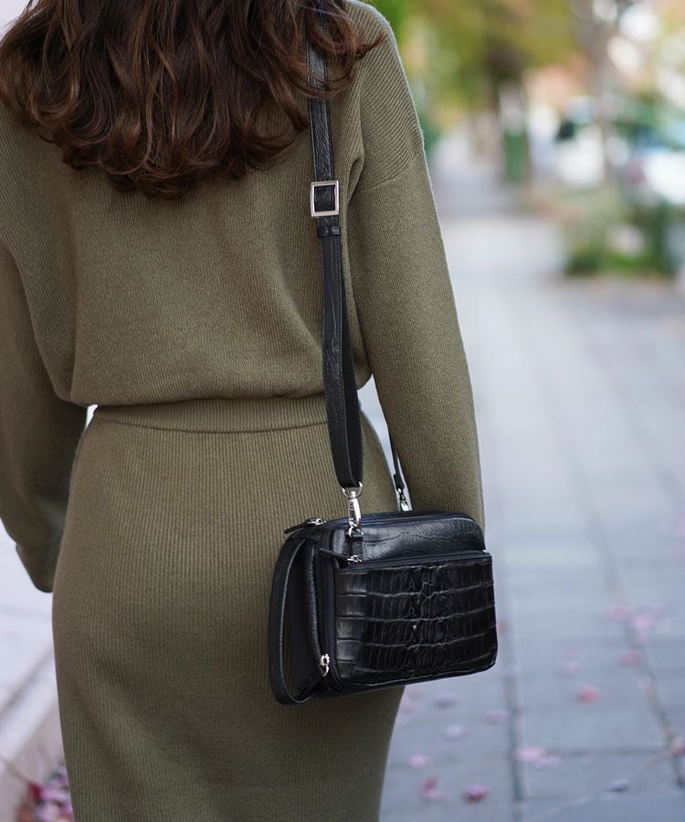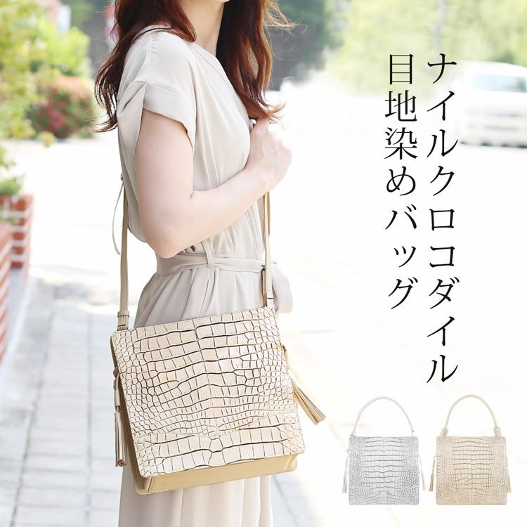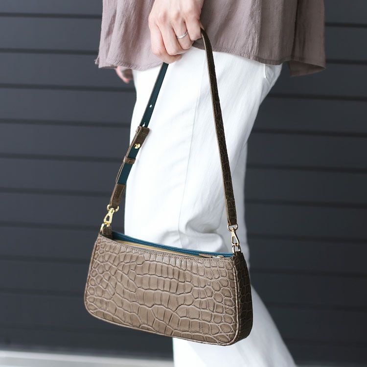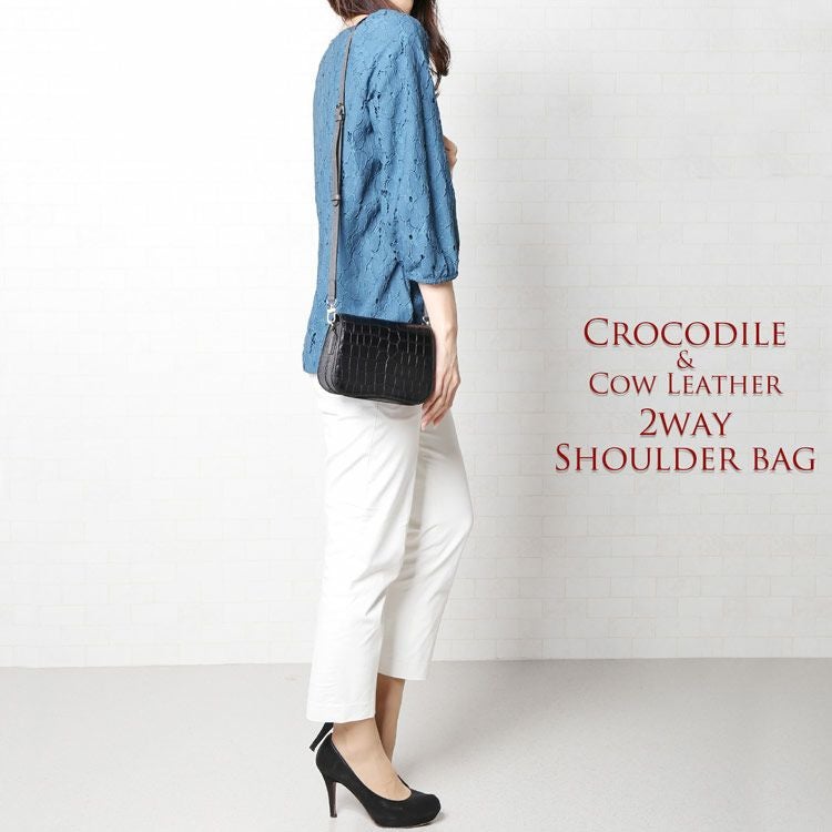 クロコダイル ショルダー バッグ バイカラー 4FA