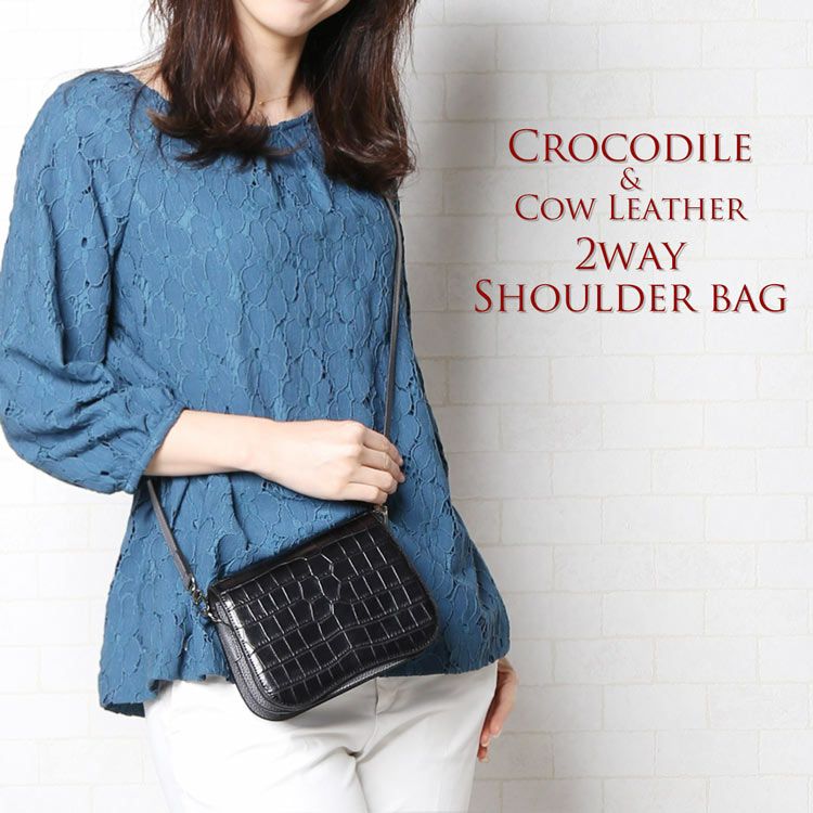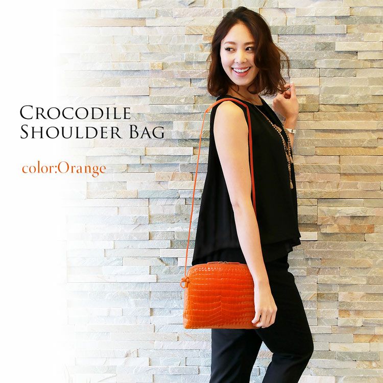 クロコダイル ショルダーバッグ シャイニング センター取り レディース 『クロコダイル保証書付き』 4FA